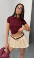 Kadın Buzy Modal Kumaş Bisiklet Yaka Basic Kısa Kol Bluz